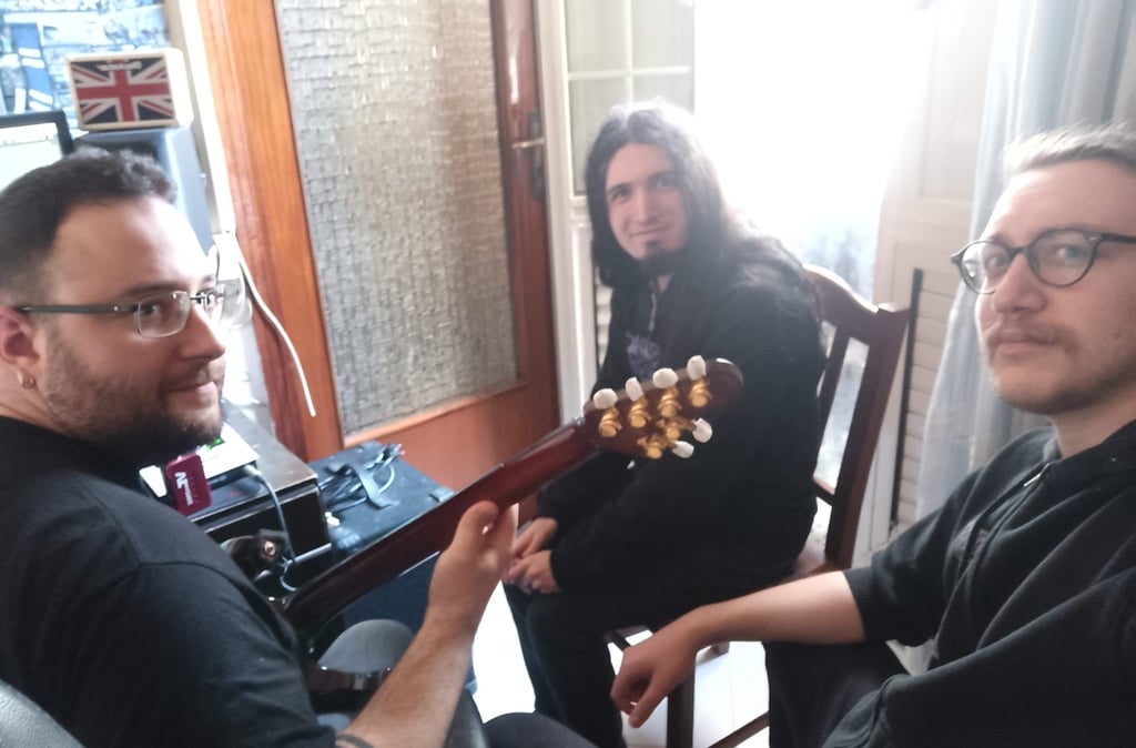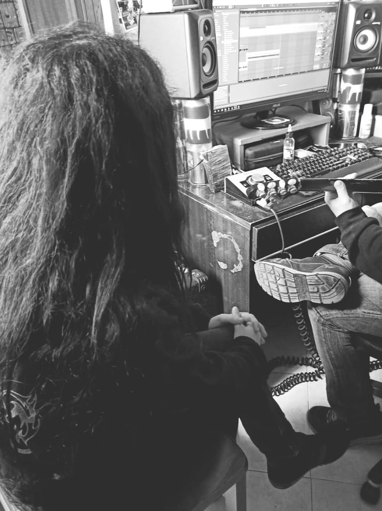 However, I also was well aware that a song like this would require much higher recording/mixing skills than my own - being used to work only within the confines of the rawest, vilest brands of sonic extremism up until then. So I reached out to Lutto, a brilliant gothic black metal band from Siracusa led by my dear old friend Miasma Sulfureo (who had already appeared in the "Sybaritic metal" videoclip, playing the characters of Osvaldo Paniccia and Prof Testo), asking for a collaboration to record "Defeated by Chaos" for my side-project. No sooner said than done. Over the course of spring 2022, the song was entirely recorded and mixed by Lutto guitarist/producer Dionysius, with Miasma Sulfureo on bass, me on lead vocals (under the less ostentatious "N.M." nickname) and Azrael on backing vocals. The result was astonishing, managing to fully capture the sharp, cold sounds from the 90's Swanö/Tägtgren school of production I used as main reference.